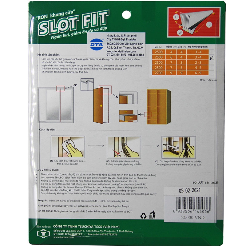 Làm kín các khe hở giữa các cánh cửa, giữa cánh cửa và khung cửa. Khắc phục nhược điểm của cửa và khe hở trên cửa khi bị biến dạng. Dành cho khe hở khung bao cửa từ 3 mm đến 4 mm. Đế nhựa mềm có sẵn keo dán, lông màu nâu. Phù hợp với các loại cửa đi 1 cánh hay nhiều cánh, cửa sổ cánh mở, cánh lùa hoặc sập.... Công nghệ Nano Capsules chống côn trùng. Ngăn hơi nóng, lạnh, mùi hôi, côn trùng, giảm âm, ngăn gió lùa. Keo dán theo tiêu chuẩn và công nghệ Nhật Bản thích hợp cho của gỗ, cửa sắt, cửa nhôm ...